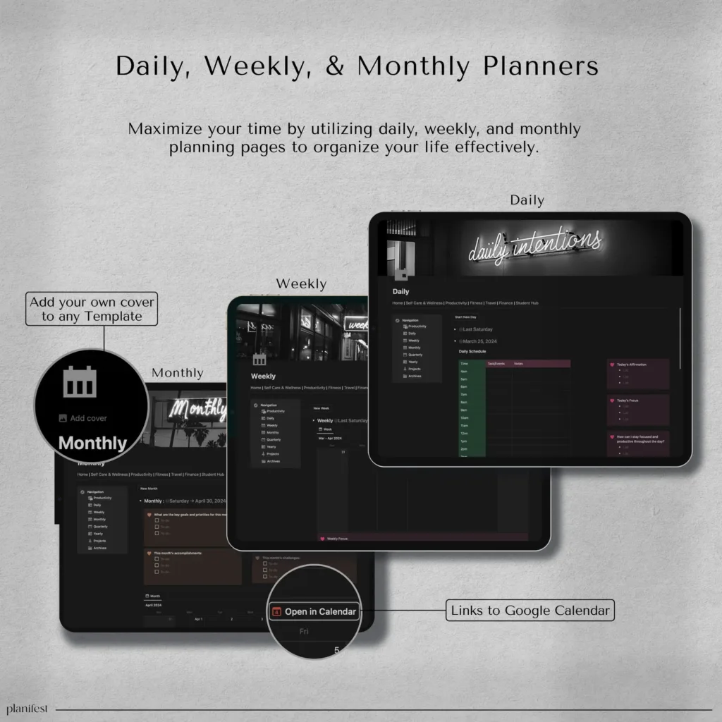 𝘚𝘪𝘮𝘱𝘭𝘪𝘧𝘺 𝘺𝘰𝘶𝘳 𝘭𝘪𝘧𝘦 𝘸𝘪𝘵𝘩 𝘰𝘶𝘳 𝘈𝘓𝘓-𝘐𝘕-𝘖𝘕𝘌 𝘕𝘖𝘛𝘐𝘖𝘕 𝘛𝘌𝘔𝘗𝘓𝘈𝘛𝘌 𝘧𝘰𝘳 𝘱𝘭𝘢𝘯𝘯𝘪𝘯𝘨, 𝘵𝘳𝘢𝘤𝘬𝘪𝘯𝘨, 𝘢𝘯𝘥 𝘰𝘳𝘨𝘢𝘯𝘪𝘻𝘪𝘯𝘨. 𝘚𝘦𝘢𝘮𝘭𝘦𝘴𝘴𝘭𝘺 𝘴𝘺𝘯𝘤 𝘺𝘰𝘶𝘳 𝘥𝘰𝘤𝘶𝘮𝘦𝘯𝘵𝘴 𝘢𝘤𝘳𝘰𝘴𝘴 𝘢𝘭𝘭 𝘥𝘦𝘷𝘪𝘤𝘦𝘴 𝘸𝘪𝘵𝘩 𝘵𝘩𝘦 𝘕𝘰𝘵𝘪𝘰𝘯 𝘈𝘱𝘱! 𝘌𝘯𝘫𝘰𝘺 𝘦𝘢𝘴𝘺 𝘳𝘦𝘢𝘥𝘢𝘣𝘪𝘭𝘪𝘵𝘺 𝘸𝘪𝘵𝘩 𝘰𝘶𝘳 𝘥𝘢𝘳𝘬 𝘮𝘰𝘥𝘦, 𝘥𝘦𝘴𝘪𝘨𝘯𝘦𝘥 𝘵𝘰 𝘣𝘦 𝘨𝘦𝘯𝘵𝘭𝘦 𝘰𝘯 𝘺𝘰𝘶𝘳 𝘦𝘺𝘦𝘴, 𝘰𝘳 𝘴𝘸𝘪𝘵𝘤𝘩 𝘵𝘰 𝘭𝘪𝘨𝘩𝘵 𝘮𝘰𝘥𝘦 𝘧𝘰𝘳 𝘢 𝘥𝘪𝘧𝘧𝘦𝘳𝘦𝘯𝘵 𝘷𝘪𝘣𝘦. 𝘞𝘪𝘵𝘩 6 𝘴𝘦𝘤𝘵𝘪𝘰𝘯𝘴 𝘢𝘯𝘥 𝘰𝘷𝘦𝘳 40 𝘵𝘦𝘮𝘱𝘭𝘢𝘵𝘦𝘴, 𝘪𝘵’𝘴 𝘺𝘰𝘶𝘳 𝘶𝘭𝘵𝘪𝘮𝘢𝘵𝘦 𝘴𝘰𝘭𝘶𝘵𝘪𝘰𝘯 𝘧𝘰𝘳 𝘴𝘵𝘳𝘦𝘢𝘮𝘭𝘪𝘯𝘪𝘯𝘨 𝘥𝘢𝘪𝘭𝘺 𝘳𝘰𝘶𝘵𝘪𝘯𝘦𝘴 𝘢𝘯𝘥 𝘦𝘯𝘩𝘢𝘯𝘤𝘪𝘯𝘨 𝘱𝘳𝘰𝘥𝘶𝘤𝘵𝘪𝘷𝘪𝘵𝘺. 𝘔𝘢𝘯𝘢𝘨𝘦 𝘴𝘦𝘭𝘧-𝘤𝘢𝘳𝘦 𝘢𝘯𝘥 𝘸𝘦𝘭𝘭𝘯𝘦𝘴𝘴, 𝘵𝘳𝘢𝘤𝘬 𝘧𝘪𝘯𝘢𝘯𝘤𝘦𝘴, 𝘴𝘦𝘵 𝘨𝘰𝘢𝘭𝘴, 𝘰𝘱𝘵𝘪𝘮𝘪𝘻𝘦 𝘧𝘪𝘵𝘯𝘦𝘴𝘴, 𝘱𝘭𝘢𝘯 𝘵𝘳𝘢𝘷𝘦𝘭, 𝘢𝘯𝘥 𝘴𝘵𝘢𝘺 𝘰𝘯 𝘵𝘰𝘱 𝘰𝘧 𝘴𝘤𝘩𝘰𝘰𝘭 𝘵𝘢𝘴𝘬𝘴—𝘢𝘭𝘭 𝘪𝘯 𝘰𝘯𝘦 𝘱𝘭𝘢𝘤𝘦.