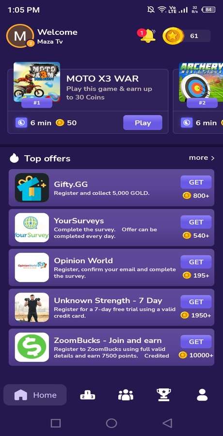 - Play Games and earn
